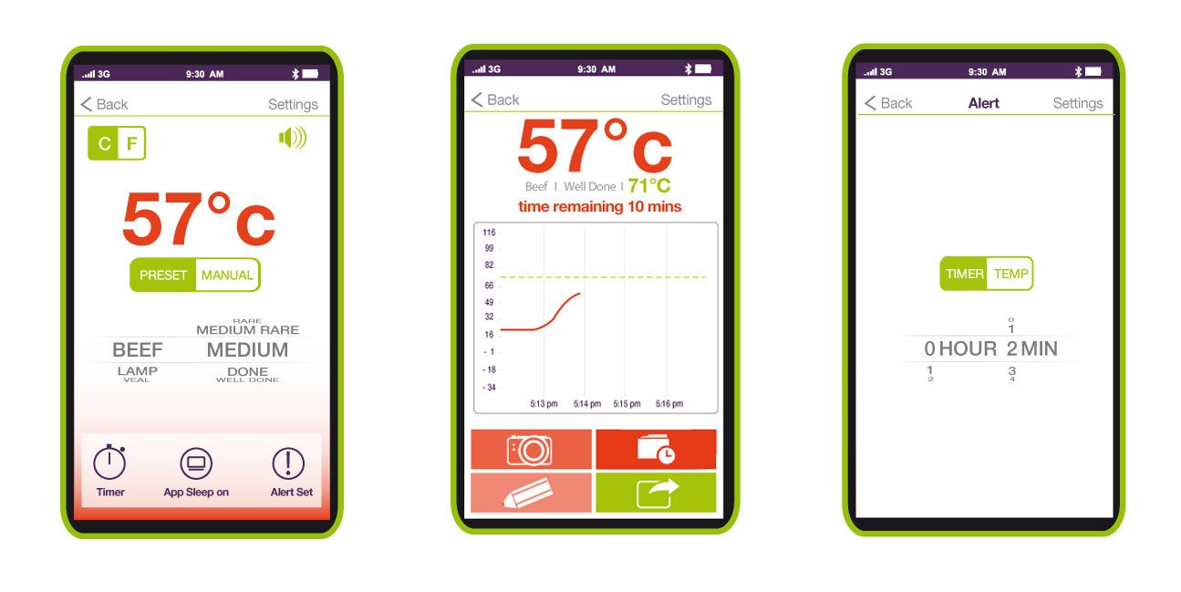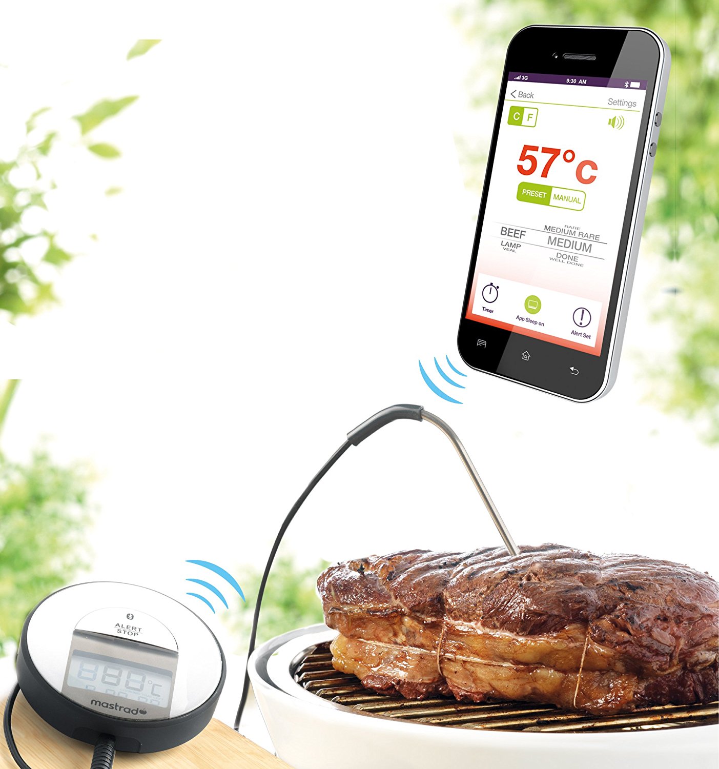 Bluetooth teploměr vás v reálném čase informuje na smartphonu či tabletu s androidem o aktuální teplotě masa. V balení najdete sondu, která se vloží do masa, je opatřená 1 m kabelem a bluetooth vysílačem 4.0.. Měřitelná teplota od -50 ° C do 300 ° C Použití THERMSmart smartphone s funkcí alarmu a volbou teploty pro různé druhy masa. Tlačítko ON / OFF na zadní straně přístroje bude nepostradatelným pomocníkem při přípravě vašich grilovaných mas. Překvapte své hosty během grilování. Díky aplikaci, která vám umožní sledovat a kontrolovat teplotu, jim nabídněte vaření masa, které chtějí. Určitě uspějete s pečení nebo steaky. S 1m kabelem se nebudete muset dotýkat sondy, jakmile je vložena do masa. Vysílací jednotka umístěná mimo plameny přenáší veškeré informace do smartphonu. Takže si můžete užít své hosty, aniž byste museli zůstat u grilu. Funkce alarmu se spustí v případě problémů (např. Příliš vysoká teplota). Rozměry: 12 x 2 x 7,5 cm.