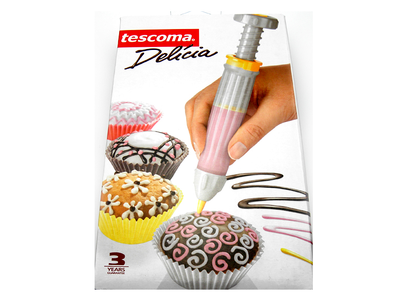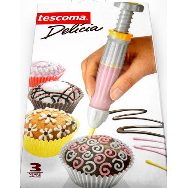 Pro snadné a precizní zdobení je perfektní tato zdobící tužka, se kterou máte krém či polevu vždy pod kontrolou. Na rozdíl od zdobících sáčků, které se špatně plní a při práci se často kroutí, je tato tužka stabilní. Tělo tužky je vyrobeno z pružného silikonu, takže vždy máte pod kontrolou množství vytlačované polevy nebo krému. Díky praktickému stojánku tužku velmi snadno naplníte. Sada obsahuje pět různých trysek, které po dozdobení můžete uložit do tužky. Tužka je perfektní na zdobení perníčku i jiného cukroví. Délka tužky: 5 cm. Materiál: silikon a plast.
