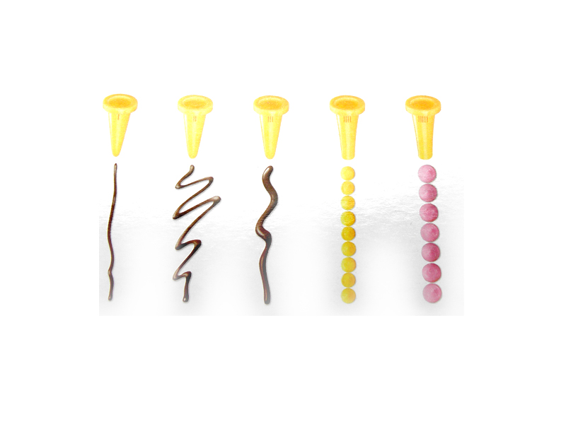 Zdobící tužka na zdobení krémem a polevou s pěti zdobícími tryskami.