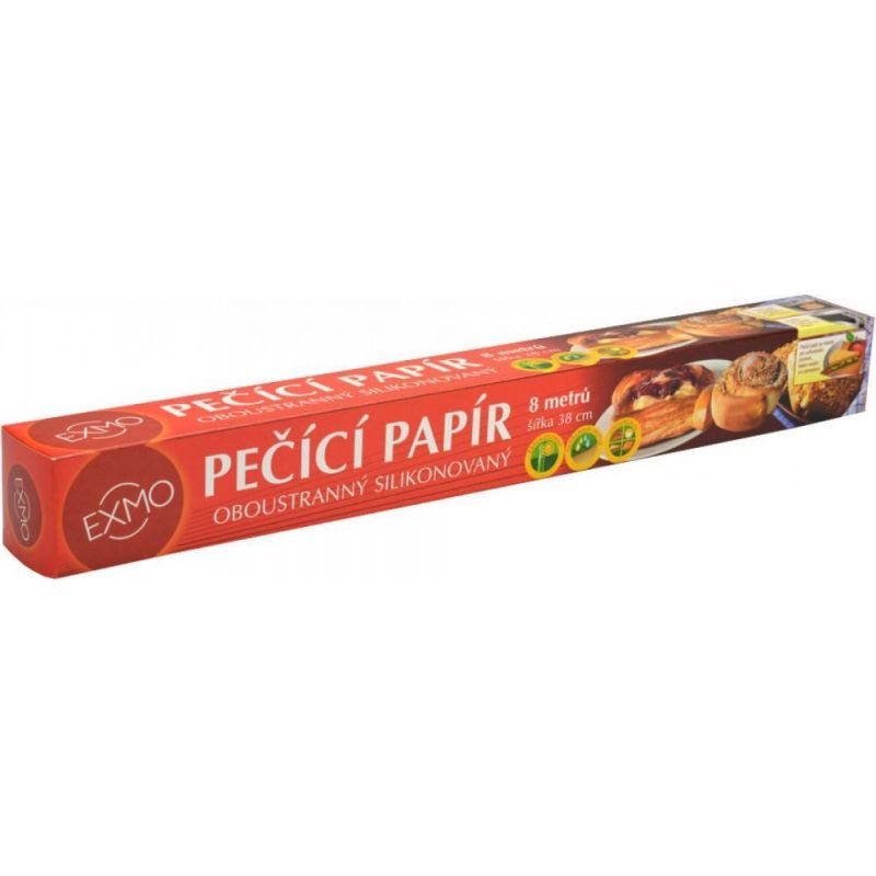 Univerzální papír pro přípravu jídel a skladování potravin. Oboustranně použitelný, žáruvzdorný do 220°C. Šířka: 38 cm Délka: 8 m