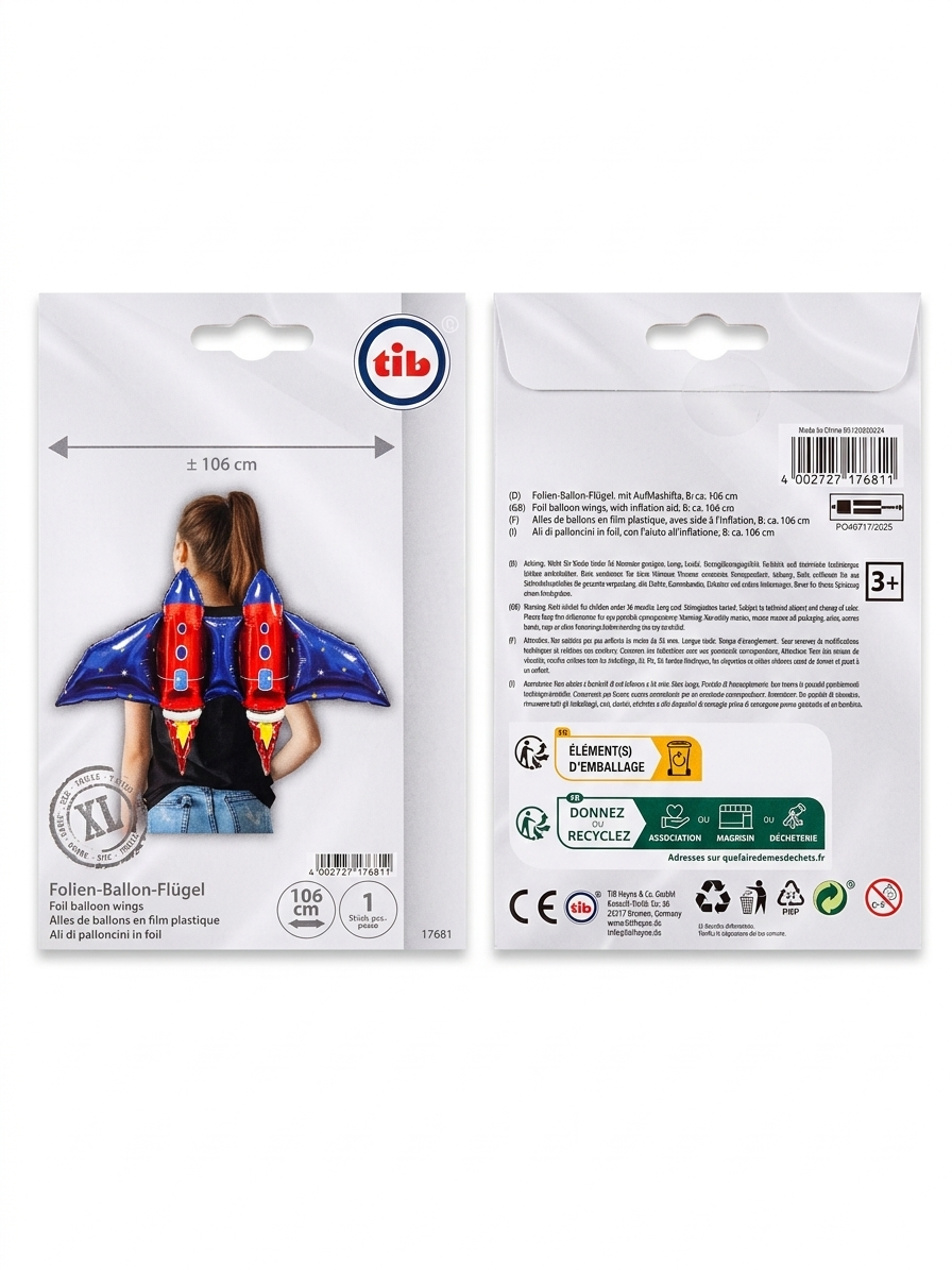 Fóliový balónek křídla Raketa 106x57cm
