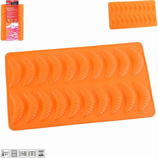 Forma na vanilkové rohlíčky je z odolného silikonu. Najednou připravíte 15 stejně velkých rohlíčků. Silikonová forma je pružná, rohlíčky z ní jednoduše vyklopíte. Oceníte rychlost výroby i stejné velikosti a tvary. Vaše cukroví tak bude maximálně úhledné. Kromě vanilkových rohlíčků zde můžete připravit také nejrůznější pochoutky ze želé nebo čokolády. Délka rohlíčku je 5,5 cm a rozměr formy 24,5x20,x1,2 cm.