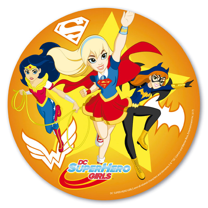 Jedlý papír k jednoduchému a rychlému dekorování dortů. Jedná se o bezlepkový výrobek. Na jeho výrobu jsou použity kvalitní suroviny a potravinářské barvy. Tisk je prováděn ve speciální potravinářské tiskárně. Jedlý dort umožní ozdobení dortu či jiných dezertů. Pokládá se na hotový dort, jehož vrchní díl můžete potřít tenkou vrstvou máslového krému či fixačního jedlého gelu. Papír položte na tuto vrstvu, uhlaďte a potřete opět gelem. Bude lépe držet a rozjasní se jeho barvy. Přikládejte jej na dort minimálně tři hodiny před konzumací, aby byl při servírování dortu měkký. Tento jedlý papír je potištěn motivem super hrdinek Super Hero Girls. Průměr 20 cm.