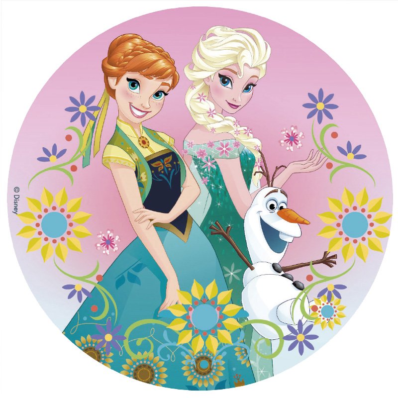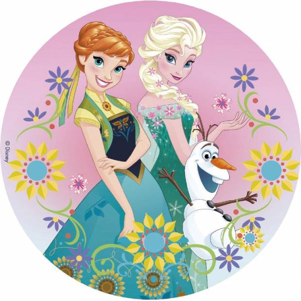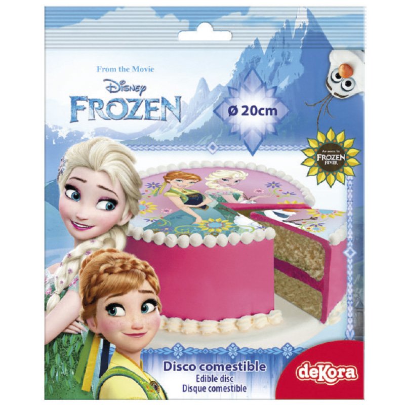 Jedlý papír k jednoduchému a rychlému dekorování dortů. Jedná se o bezlepkový výrobek. Na jeho výrobu jsou použity kvalitní suroviny a potravinářské barvy. Tisk je prováděn ve speciální potravinářské tiskárně. Jedlý dort umožní ozdobení dortu či jiných dezertů. Pokládá se na hotový dort, jehož vrchní díl můžete potřít tenkou vrstvou máslového krému či fixačního jedlého gelu. Papír položte na tuto vrstvu, uhlaďte a potřete opět gelem. Bude lépe držet a rozjasní se jeho barvy. Přikládejte jej na dort minimálně tři hodiny před konzumací, aby byl při servírování dortu měkký. Tento jedlý papír je potištěn motivem Frozen – ledové království Anna a Elsa. Průměr 20 cm.
