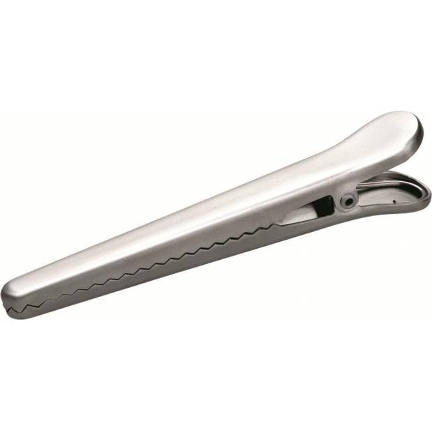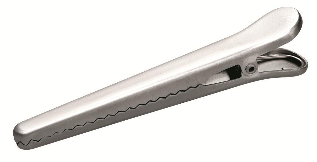 Pokud nechcete, aby vám načaté jídlo v sáčku jakýmkoliv způsobem oschlo nebo zvětralo, využijte tento klip na sáčky, pomocí něhož sáček dokonalým způsobem uzavřete. Zubatý nerezový pomocník, který lze bez problému umístit do myčky na nádobí.