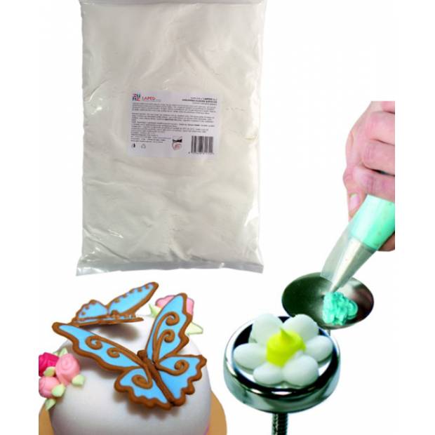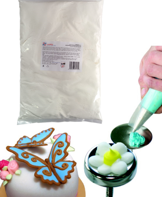 Royal Icing - královská poleva - na zhotovení mnoha cukrářských dekorací a jemné zdobení trezírovacím sáčkem. Je vhodná i na jedlé krajky. Dekorace se po zaschnutí mohou skladovat na voskovém papíru, nesmí se ale zmrazit.