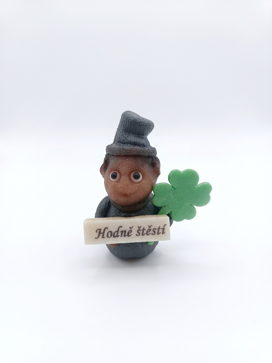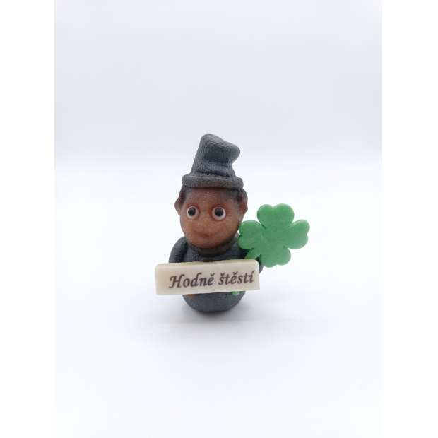 Marcipánový kominíček „Hodně štěstí“ se čtyřlístkem 5cm, 19g