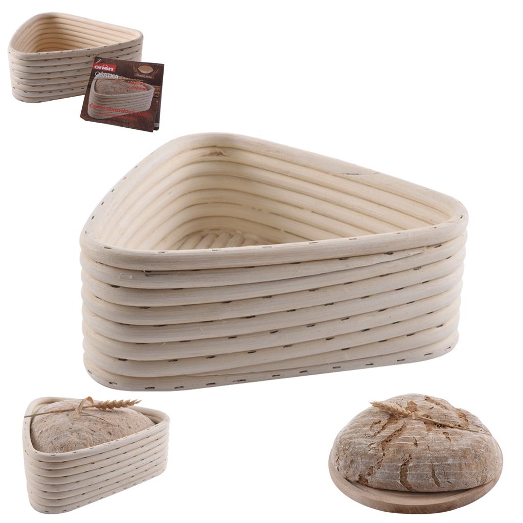 Ratanová ošatka na kynutí chleba ve tvaru trojúhelníku.