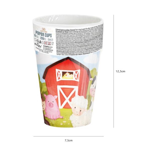 Papírové kelímky farma 6ks 220ml