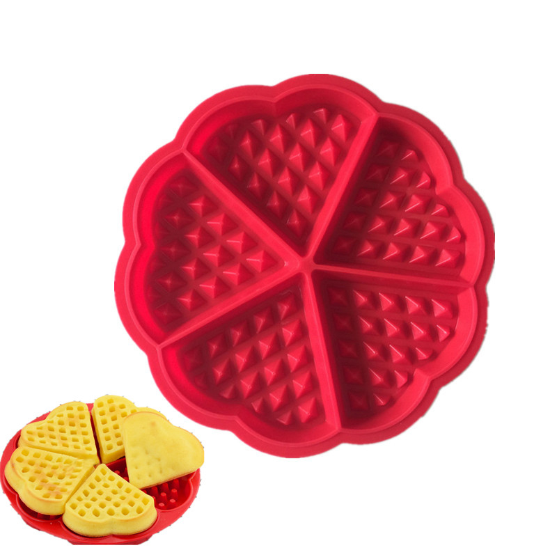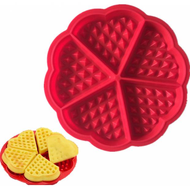 Silikonová forma na pečení pěti vaflí ve tvaru srdce.
