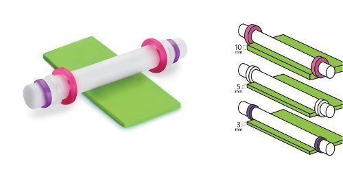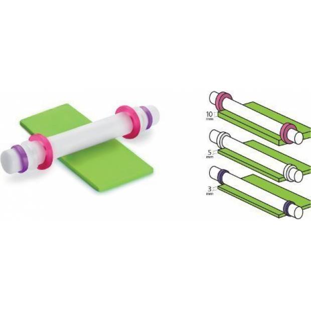 Fondant i různé druhy těsta s tímto válečkem o šířce 35 centimetrů velmi snadno rozválíte na tloušťku 3, případně 5 nebo 10 milimetrů. K nastavení požadované výšky slouží dva boční kroužky, které se lehce nasazují i sundávají. Kvalitní plast zaručuje snadnou údržbu i v myčce nádobí a také dlouhou dobu používání.