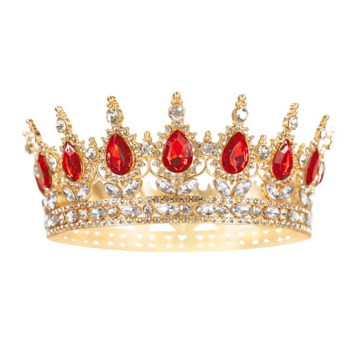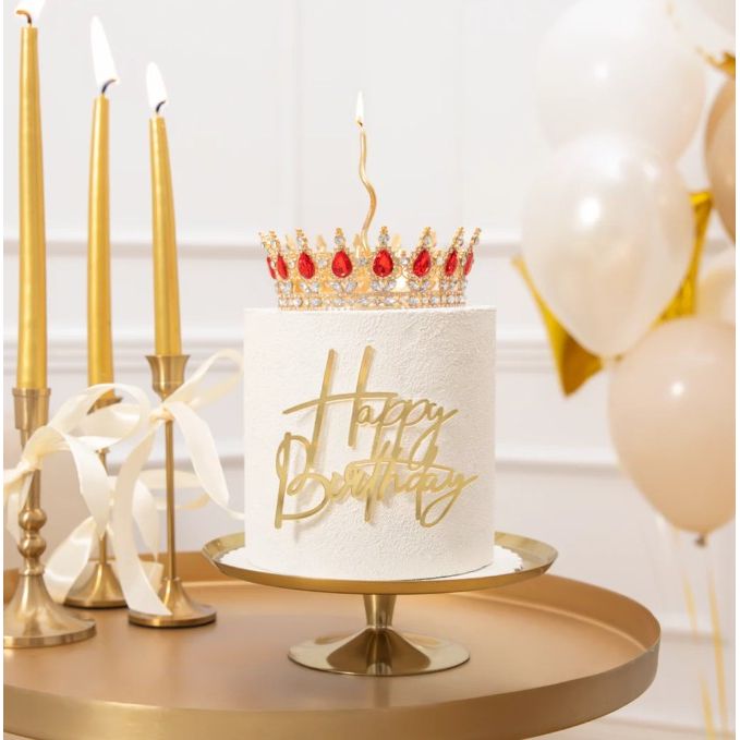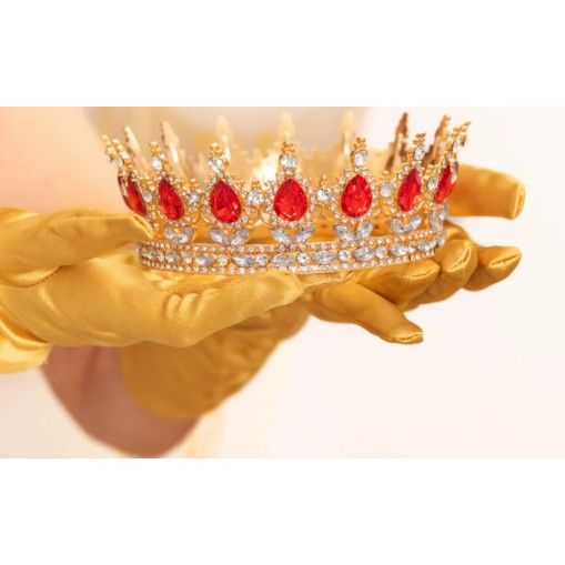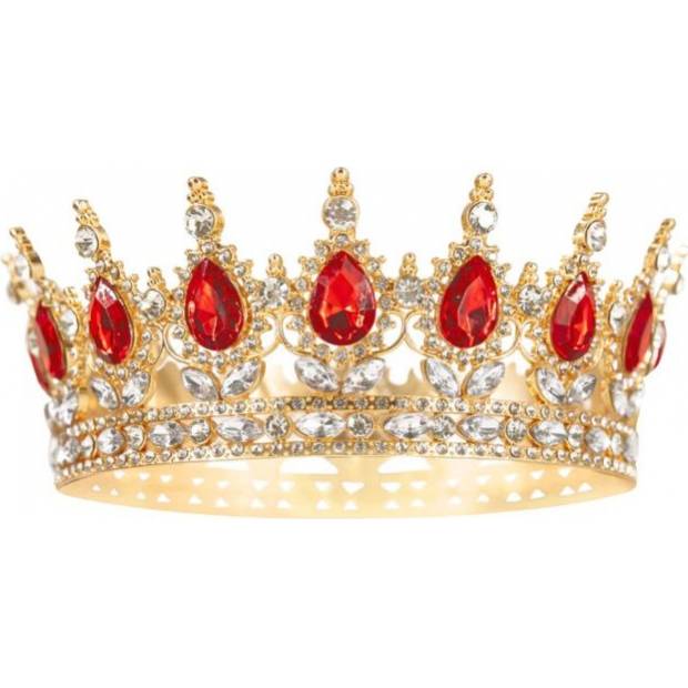 Zlatá korunka s červenými a stříbrnými krystaly 15 cm